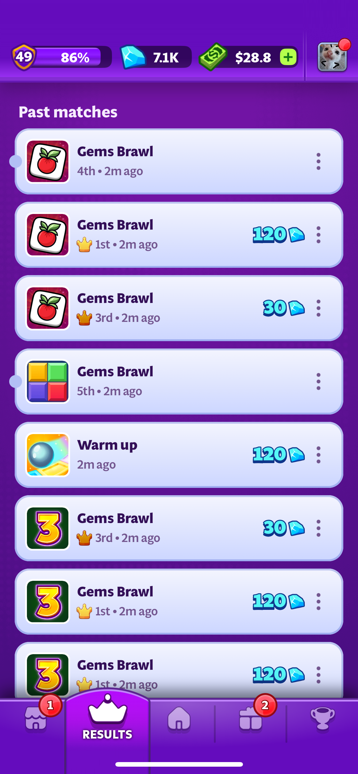 To report a match, head to the "Results" page and find the match you want to report.