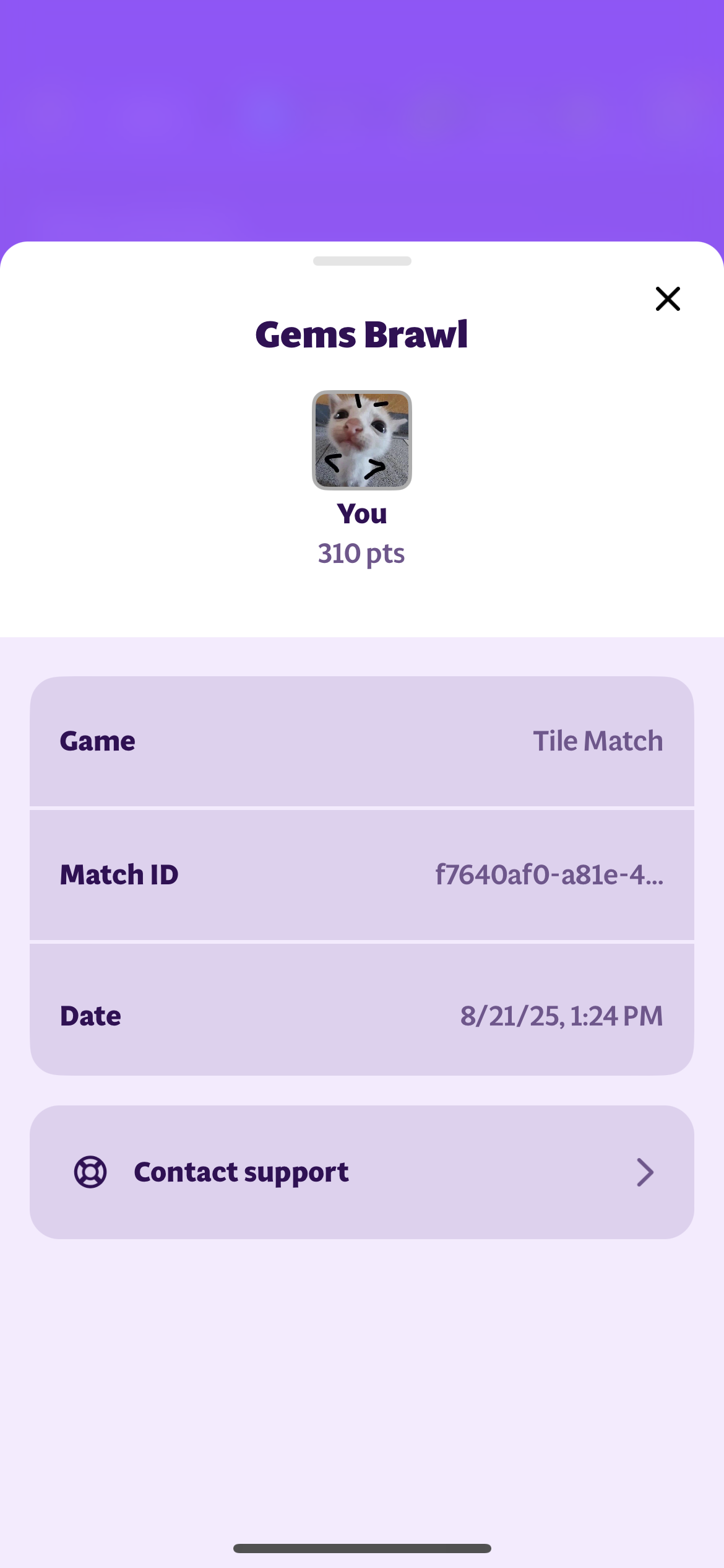 From here, click on "Contact support". An email draft will automatically open with the match details already filled in.